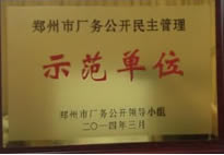 鄭州市廠務公開民主管理示范單位 發布時間:05-16瀏覽次數:99 查看詳情>>