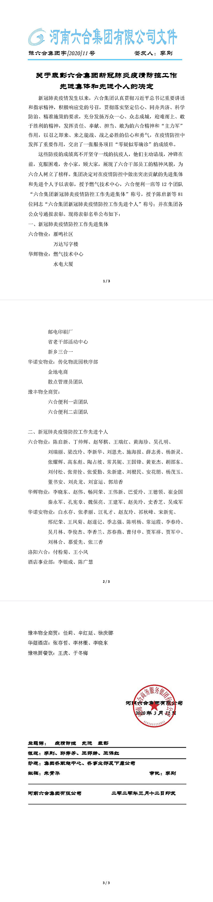 關(guān)于表彰六合集團新冠肺炎疫情防控工作先進集體和先進個人的決定