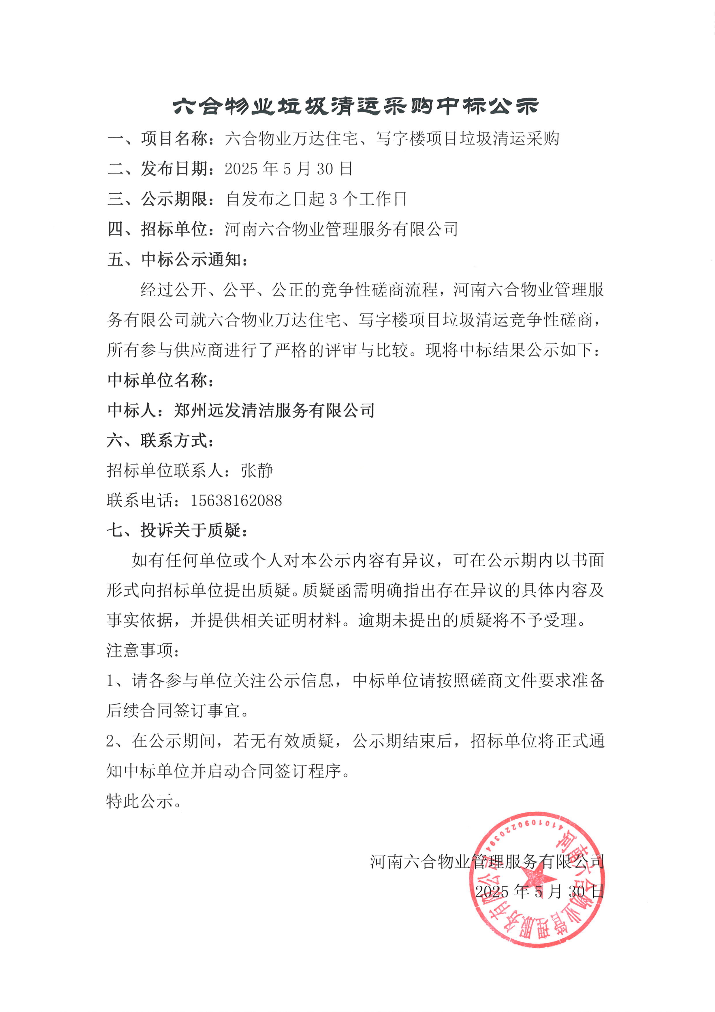 六合物業萬達住宅、寫字樓項目垃圾清運采購中標公示 發布時間:05-30瀏覽次數:1 查看詳情>>