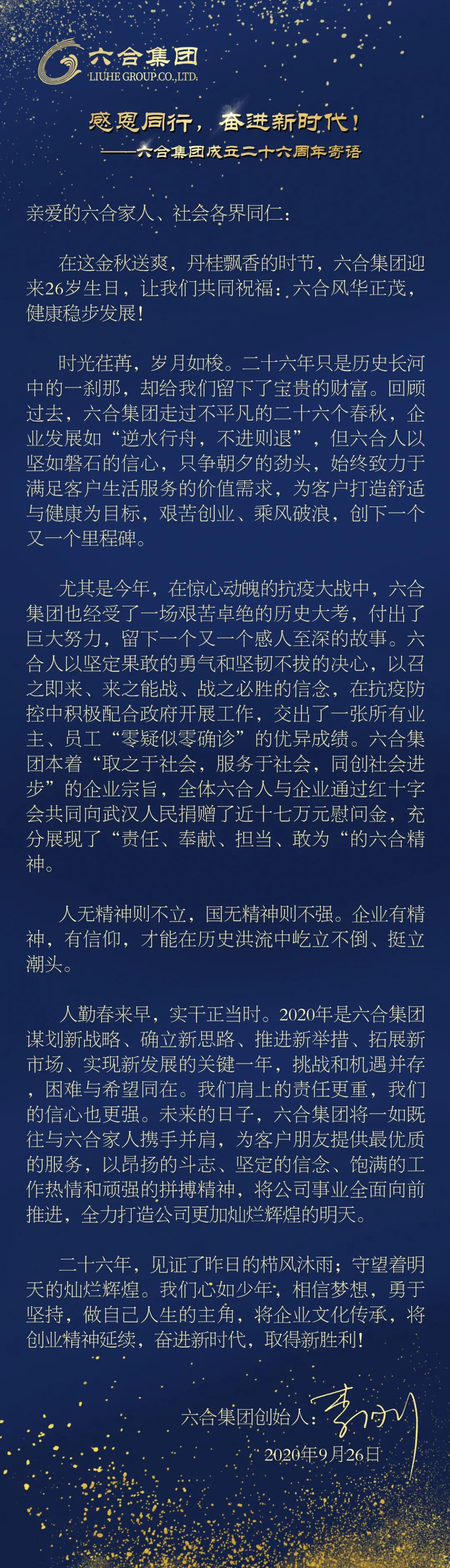 感恩同行 奮進(jìn)新時(shí)代——六合集團(tuán)26周年慶 發(fā)布時(shí)間:09-28瀏覽次數(shù):34 查看詳情>>